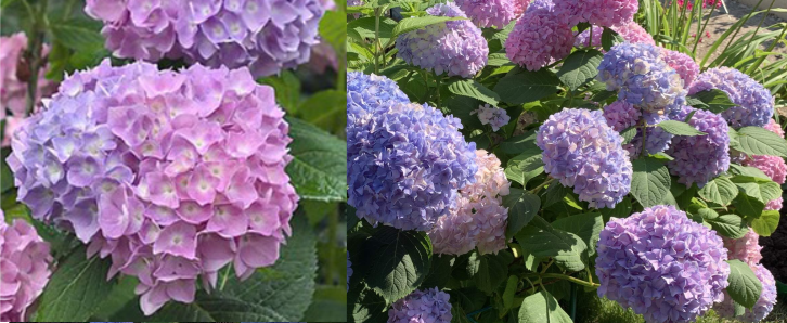Окраска соцветий: В зависимости от кислотности грунта цвет соцветий меняется от кремово-розового до сиреневого и голубого. Причем оттенки могут быть разными внутри одного куста в один момент времени.