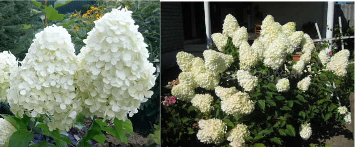 Настоящий гигант с мире растений. Его огромный куст с плотной кроной покрыт белыми метелками соцветий по-настоящему большого размера. Цветы в этих метелках также крупные. Полярный медведь не меняет цвет соцветий в течение всего сезона. Он остается белоснежным до самых заморозков. Куст хорошо держит форму и красиво смотрится в одиночных посадках. Он становится королем сада. Также используется для живой изгороди.