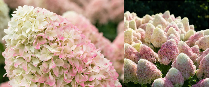 Окраска соцветий: распускается белым, потом становится розовым, чем ближе осень, тем темнее Размер соцветий: 30-35 см, плотные, пирамидальные.