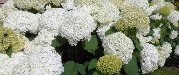 Окраска соцветий: белее белого, постепенно становится нежно-розовой, а в конце сезона светло-зеленой.