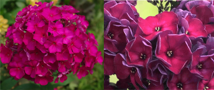 Окраска соцветий: яркий вишневый с лиловым отливом.